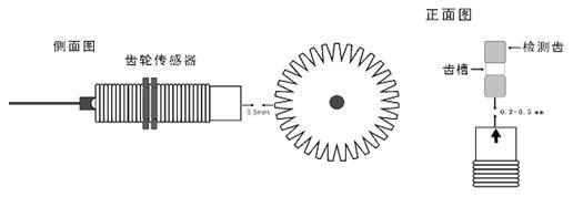 安裝時傳感器的方向標志線及檢測面要正對齒輪的中心。